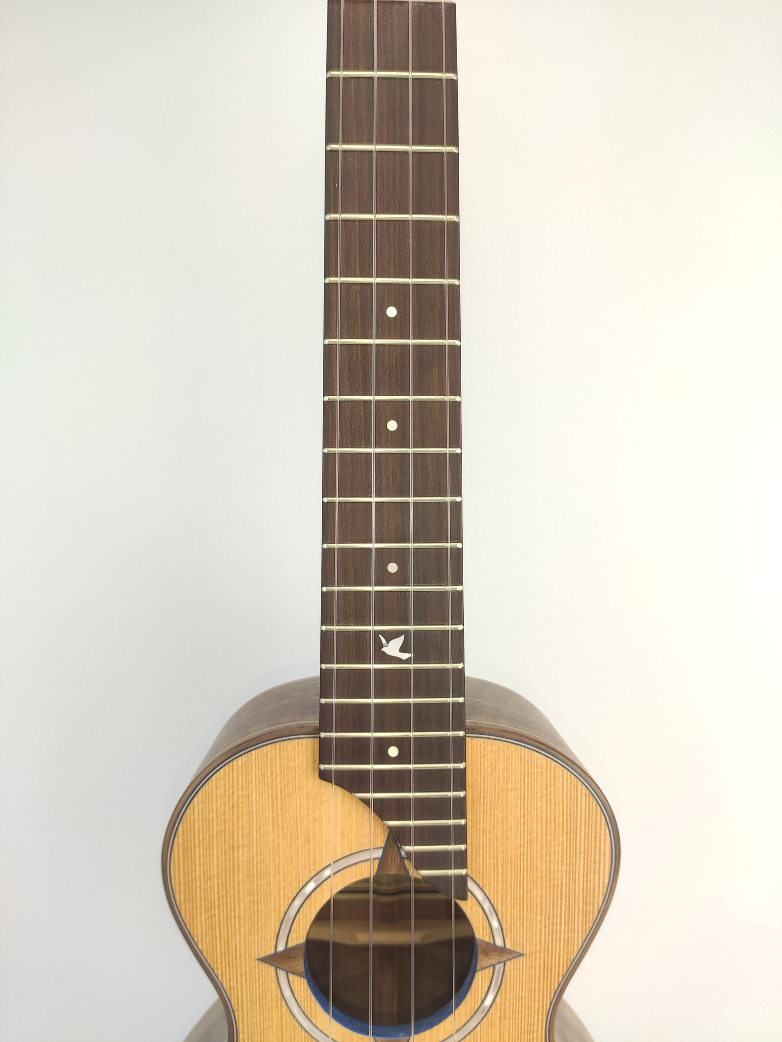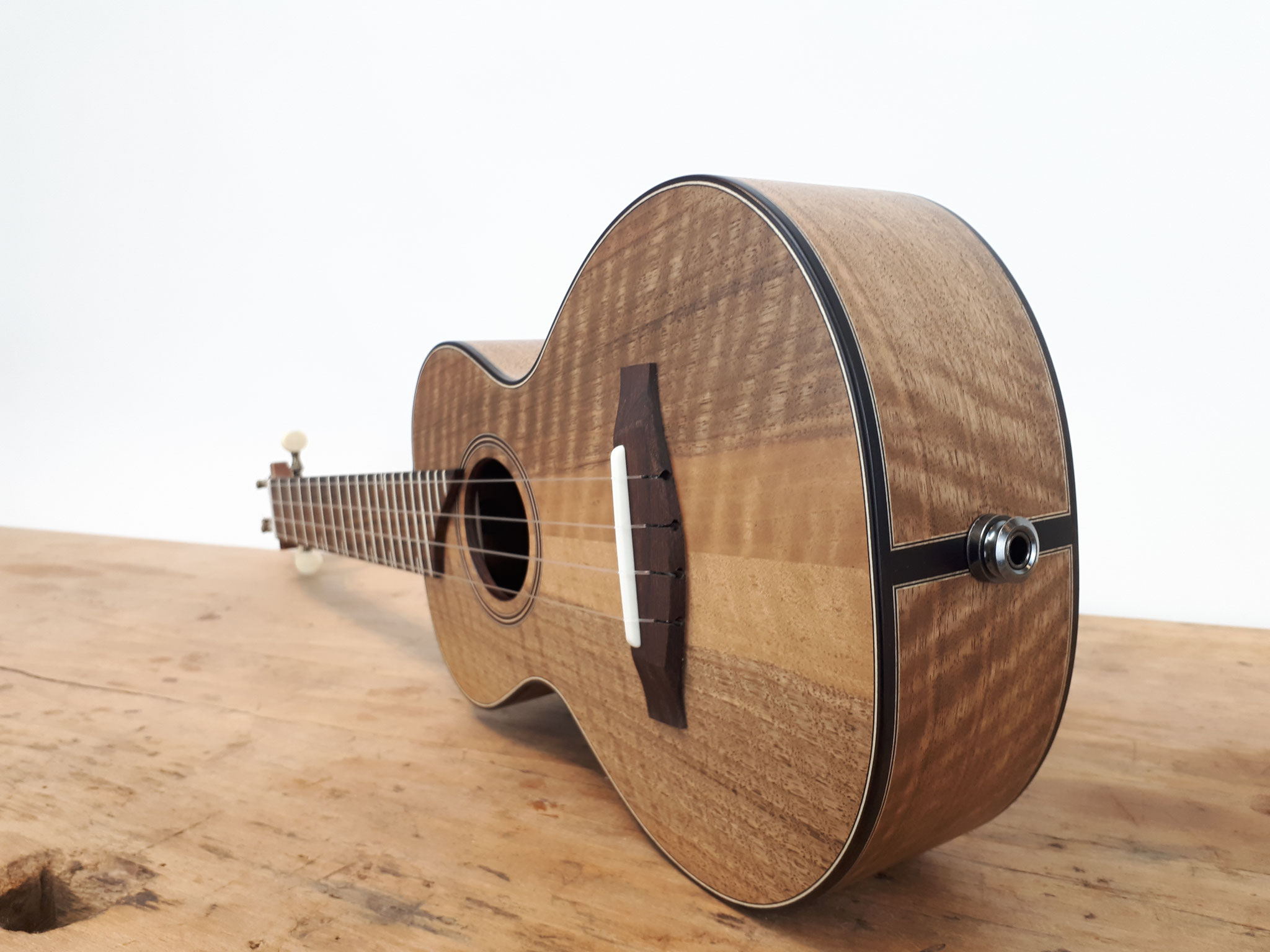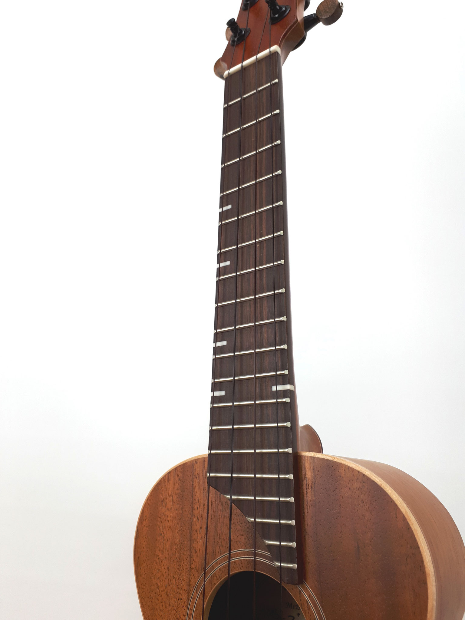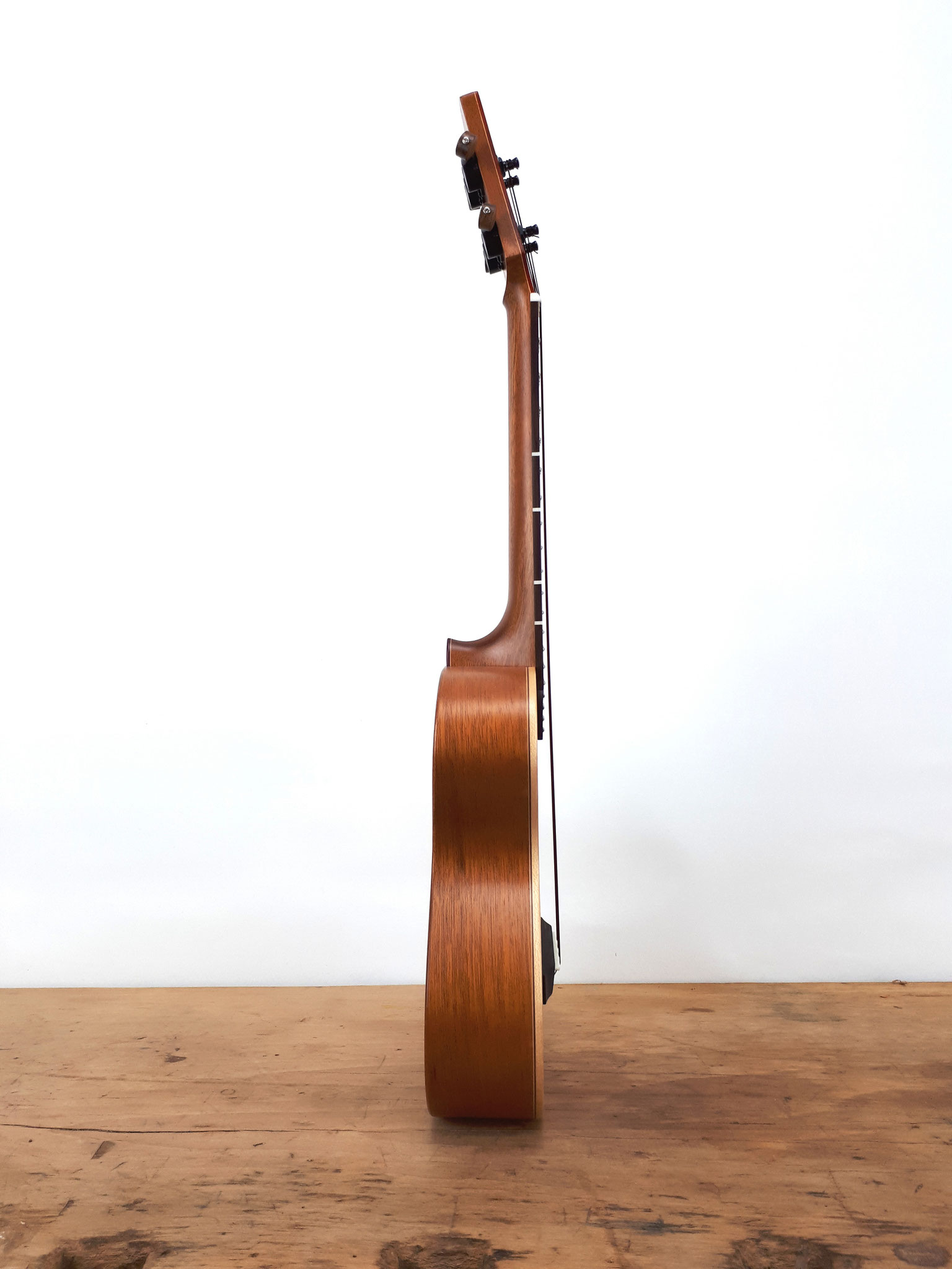 Erfahrungen aus dem Bereich des klassischen Gitarrenbaus und umfassende Zusammenarbeit mit profesionellen Musikern sind das Fundament dieses Modells.